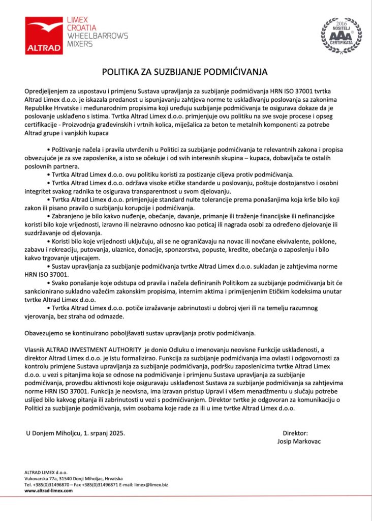 Nužni kolačići su apsolutno neophodni za pravilno funkcioniranje web stranice. Ova kategorija uključuje samo kolačiće koji osiguravaju osnovne funkcionalnosti i sigurnosne značajke web stranice. Ovi kolačići ne pohranjuju nikakve osobne podatke.